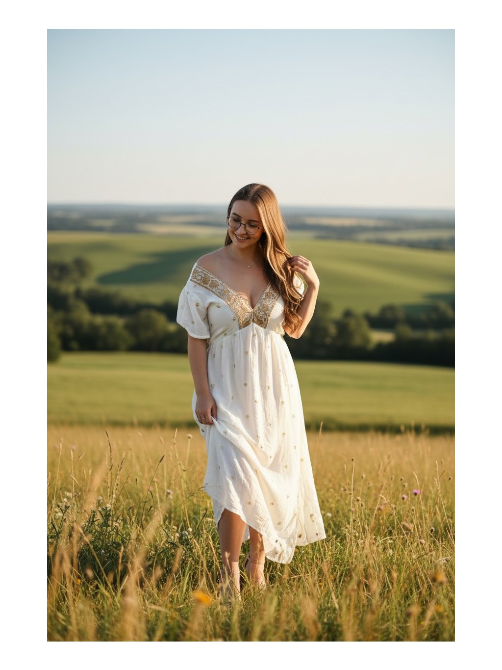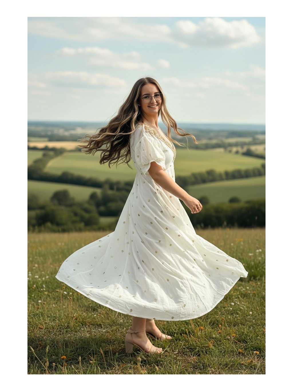 Tyto nádherné dámské šaty s výšivkou jsou ideální volbou pro ženy, které si cení boho stylu a přirozené elegance. Jsou vyrobené ze 100% prodyšné viskózy, což zajišťuje lehkost a pohodlí i během horkých dnů. Délka maxi, spolu s dekorativní zlatou výšivkou u výstřihu přitahuje pozornost a vypadá velmi žensky. Volný střih se zvýrazněným pasem krásně padne na postavu a krátké rukávy dodávají celé stylizaci lehkost. Na zadní straně je roztomilé zavazování, které zdůrazňuje charakter šatů a umožňuje jemné přizpůsobení postavě. Je to skvělý návrh na letní procházky, zahradní párty nebo romantické večeře – stačí přidat jemné sandálky a kabelku a máte kouzelný outfit. Velikost je univerzální a bude vhodná pro dámy ve velikosti S, M nebo L.