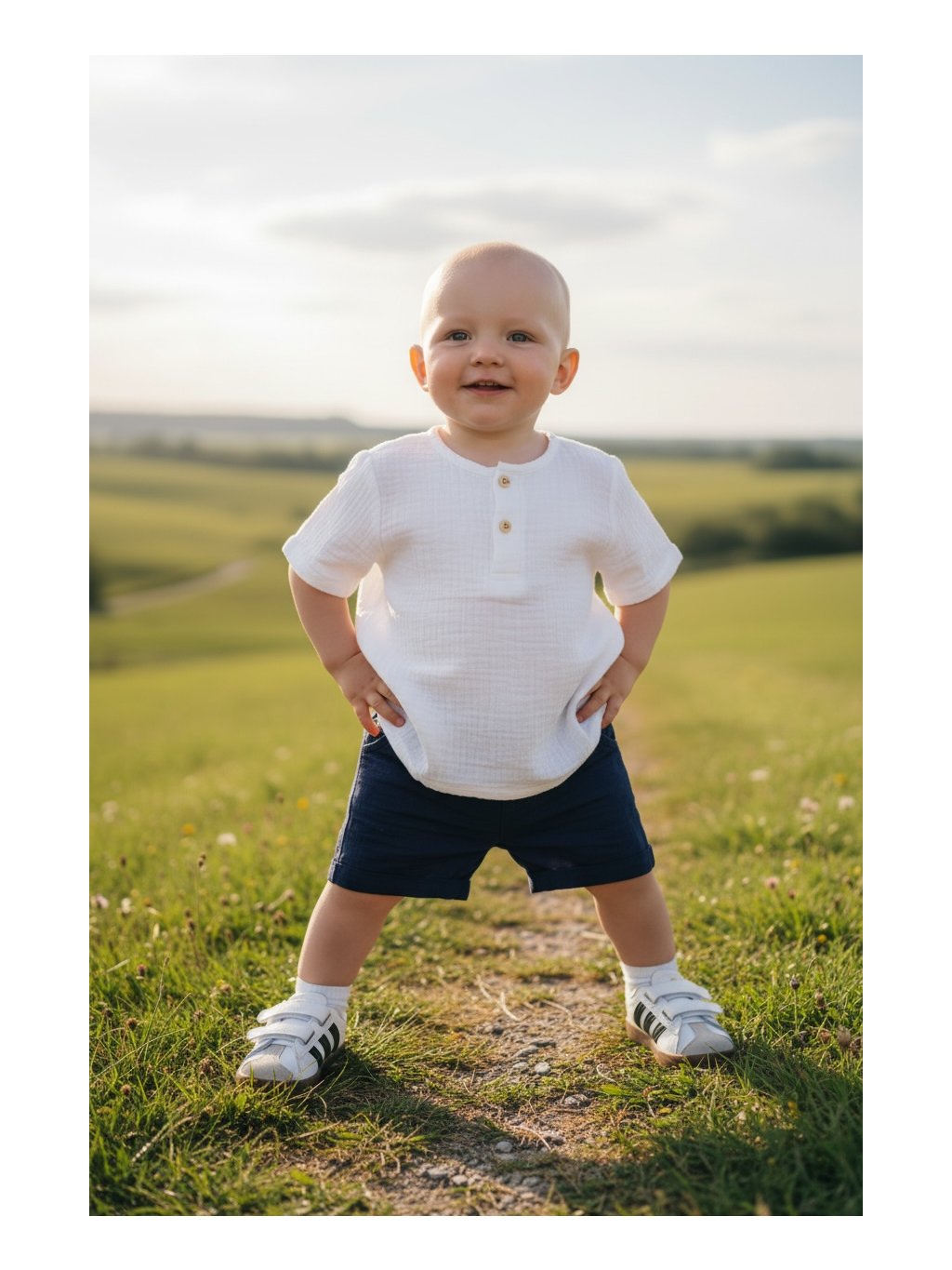 2-dílná mušelínová kojenecká soupravička české značky New Baby Summer Nature Collection pro chlapečky. Letní soupravička se skládá z trička a kraťasů. Tričko má krátký rukáv a dokonalý střih. Kraťasy jsou zdobeny kapsičkami a v pase mají širší gumu, která ale netlačí na bříško dítěte. Soupravička je lehounká a velmi příjemná při nošení. Složení: 100% bavlna.