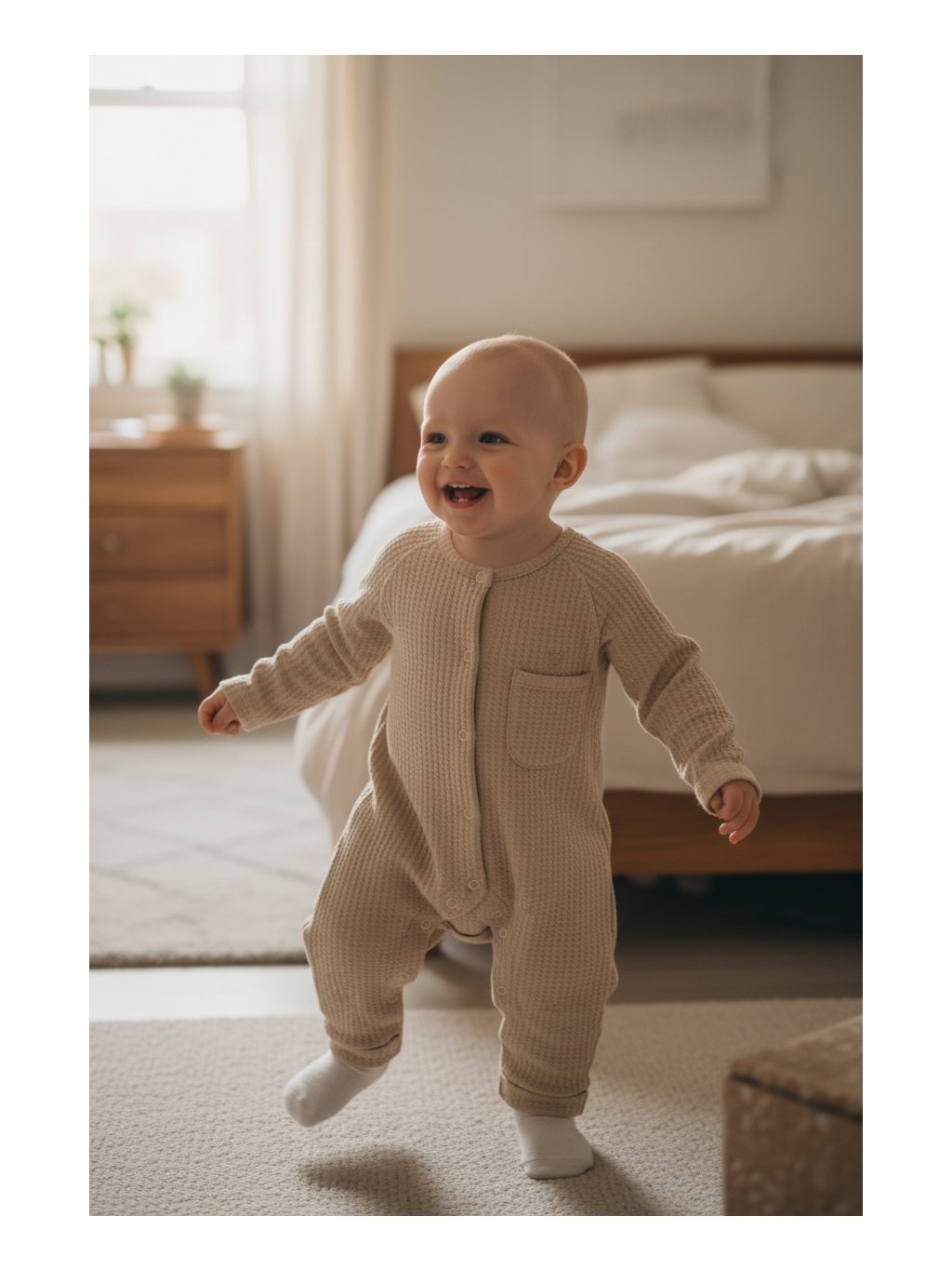 Stylový kojenecký overal Koala Bello. Overal je jednobarevný s novým atraktivním vzorem látky se zajímavou strukturou. Zapíná se na cvočky po celé délce, což velmi usnadňuje přebalování a oblékání. Ideální pro miminka. Overal je pro miminka důležitým kouskem oblečení. Při jakémkoliv pohybu jsou zádička miminka stále přikrytá. Složení: 95% bavlna, 5% elastan.