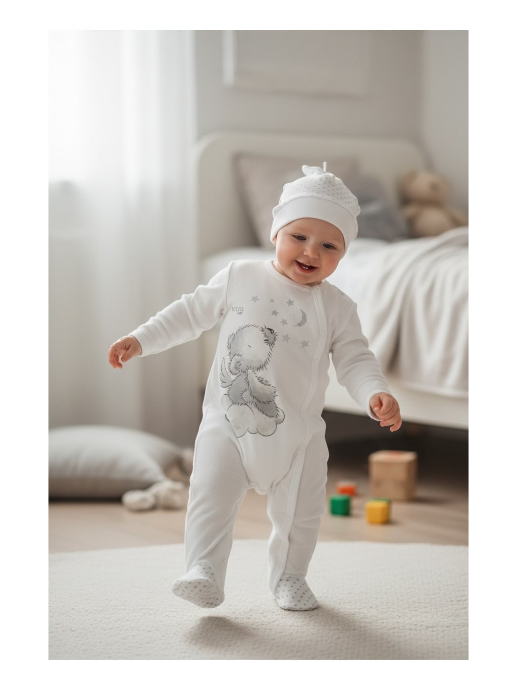 Kojenecký overal s čepičkou Koala Angel bílý