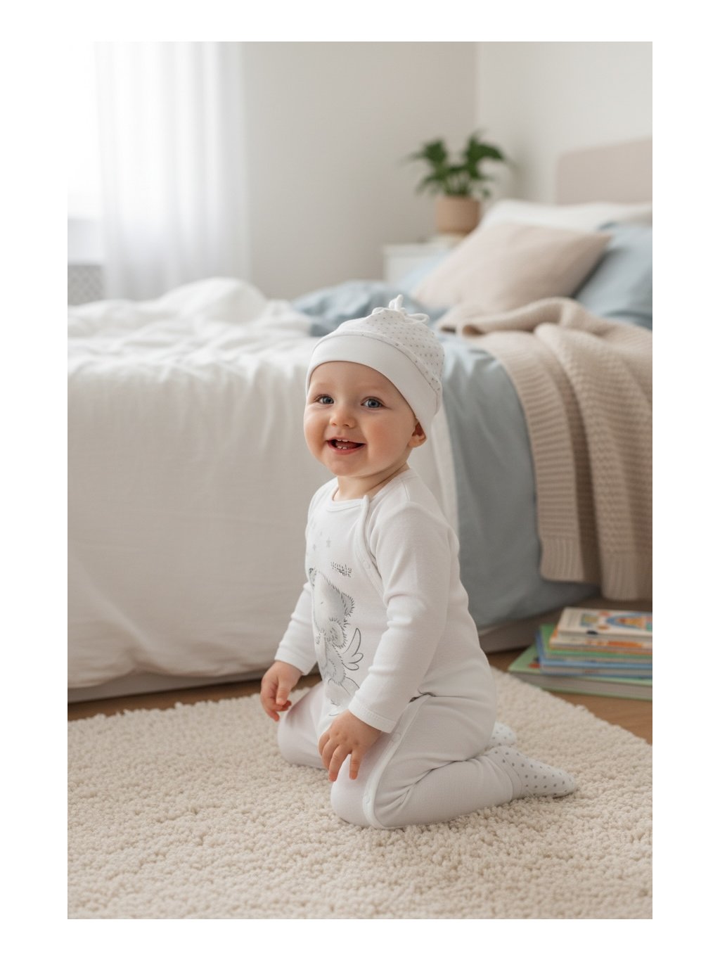 Okouzlující a jemný bavlněný kojenecký overálek s čepičkou Koala Angel. Overálek má moderní boční zapínání na cvočky po celé délce a mezi nožičkami. Je vhodný pro miminka už od narození pro svou jemnost a měkkost. Overal je zdoben obrázkem medvídka. Čepička s širším lemem krásně kryje ouška a je celopotištěná puntíky. Overal s čepičkou je vyroben z příjemného a kvalitního bavlněného materiálu, ve kterém se bude Vaše miminko cítit příjemně. Složení: 100% bavlna.