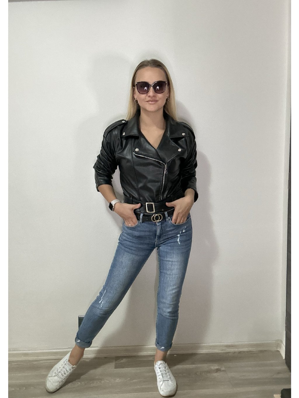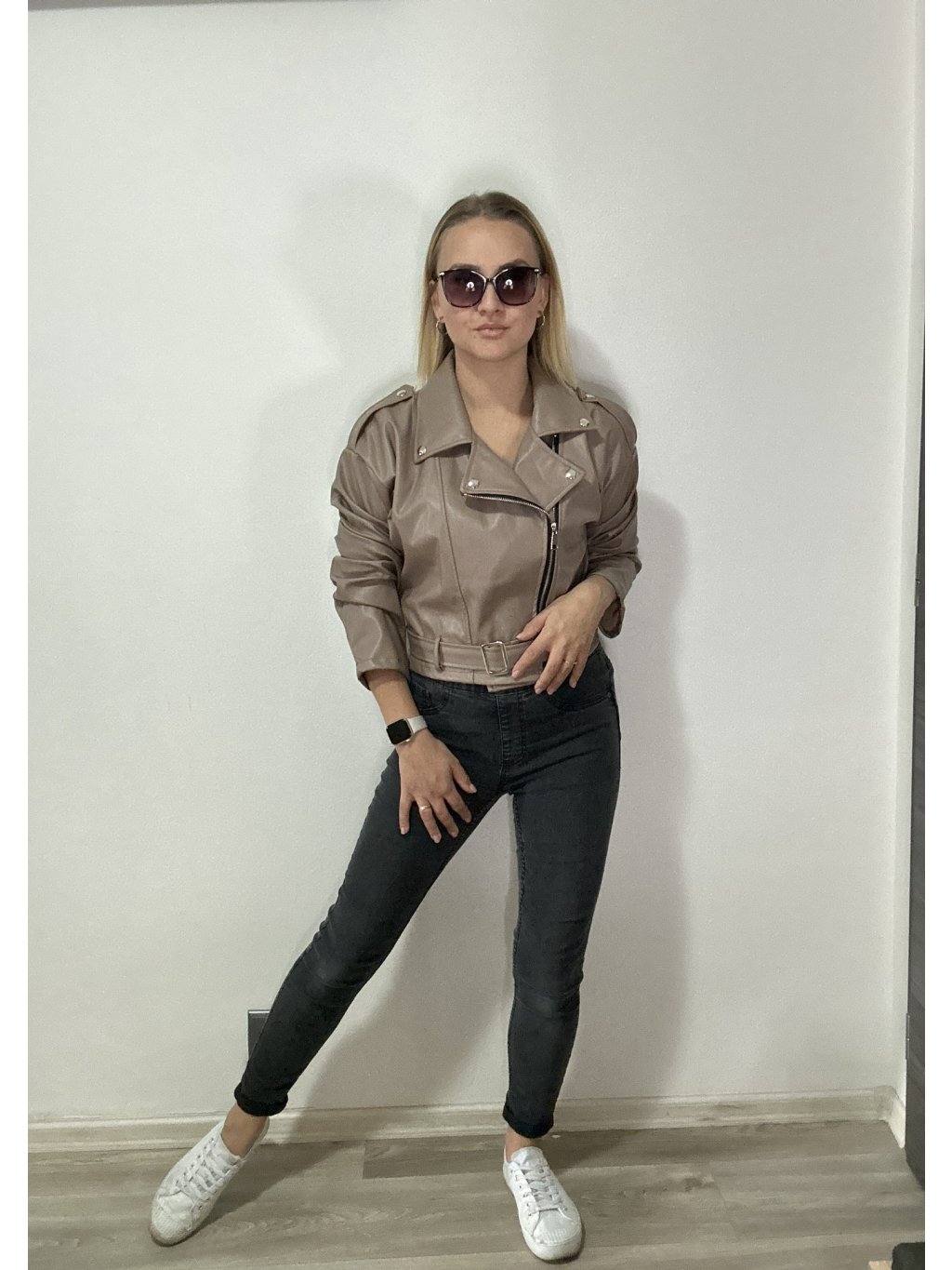 Moderní dámská bunda s krátkým střihem je návrhem pro ženy, které ocení městský styl a pohodlí. Model je vyroben z hladkého, lehce tužšího materiálu, skvěle se přizpůsobuje a přitahuje pozornost minimalistickým designem. Bunda má efektní límec, ozdobné knoflíky, zapínání na zip a pásek v pase, který umožňuje mírné přizpůsobení postavě.